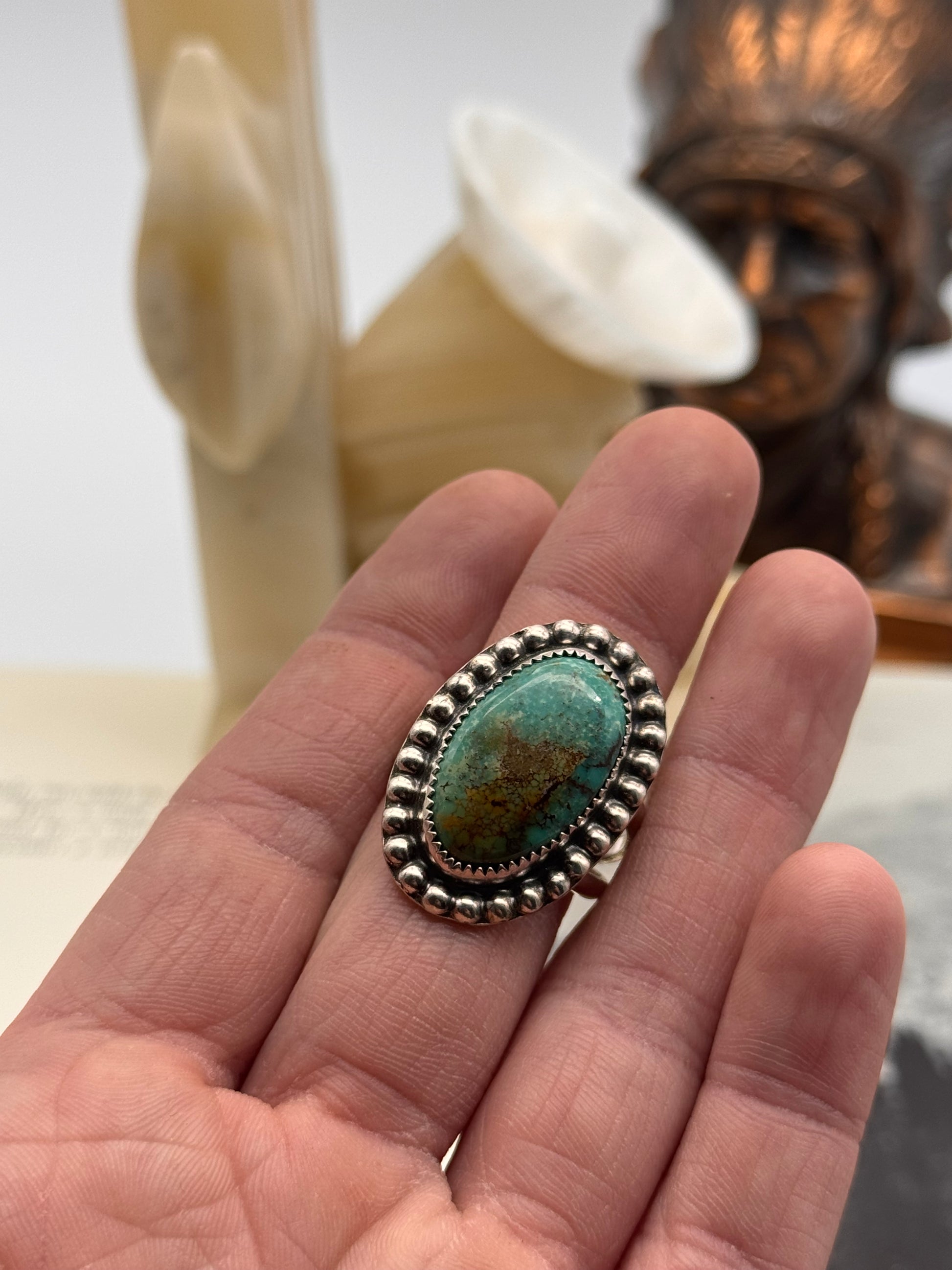 Sterling silver with genuine Kingman turquoise.